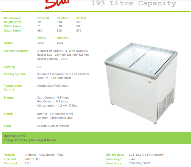 The Fridge Star CF310VI Slanted Glass Top Ice-cream Freezer is the perfect choice for displaying ice-cream . With glass sliding lids, this ice cream freezer is extremely durable and provides superior insulation to preserve and protect your frozen treats. With ample space for storage, the freezer's slanted glass top is great for displaying treats.