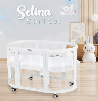 The Selina Cot features unique clear panels that provide excellent ventilation and, most importantly, offer full visibility so you can keep an eye on your baby at all times. These panels combine safety, breathability, and peace of mind, making it easier to bond and monitor your little one while they rest.